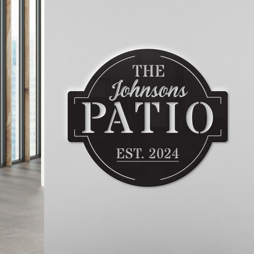 Style your patio with this unique metal sign. Crafted from durable 18 gauge steel and available in your choice of 5 vibrant colors (Black, Red, White, Copper, Silver), this sign is designed to resist the weather, ensuring years of outdoor enjoyment. Choose from 4 sizes to perfectly fit your space. Elevate your outdoor entertaining space with style!